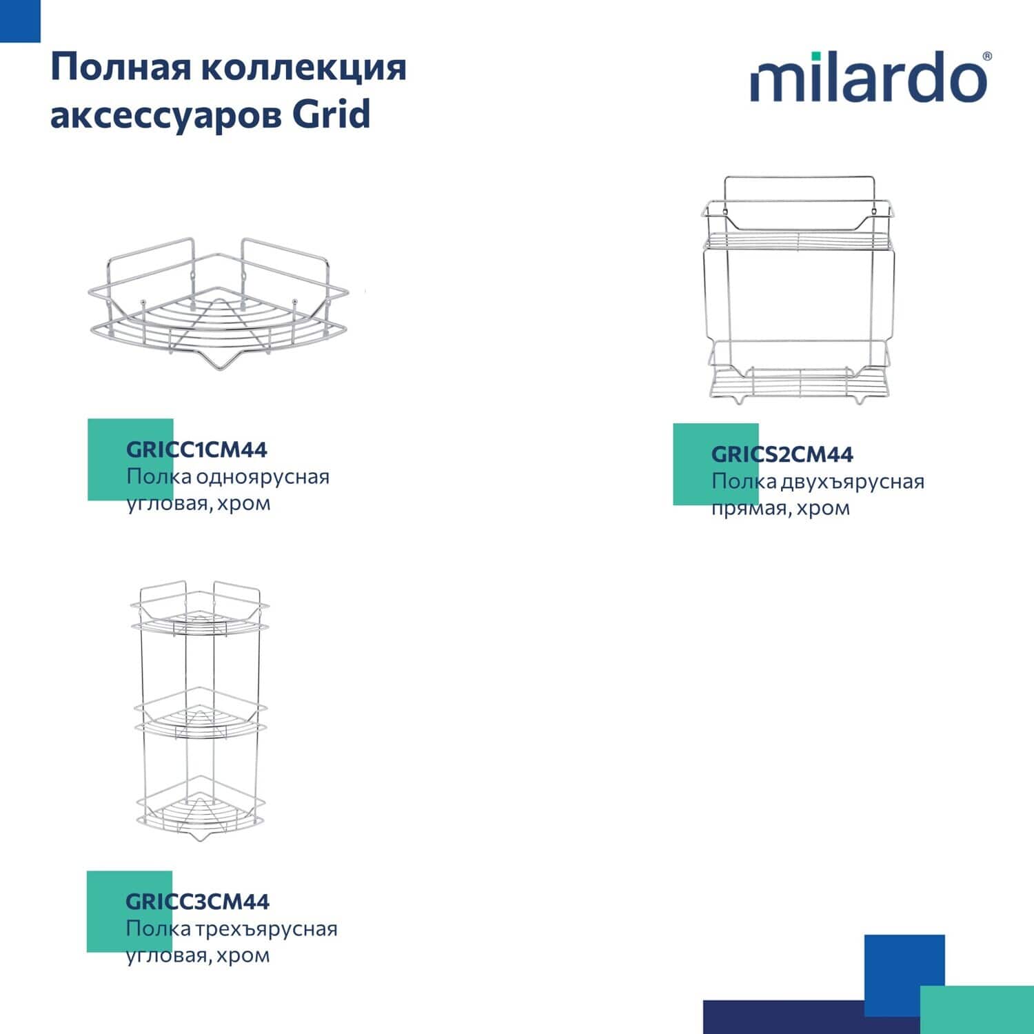 Полка одноярусная прямая, проволока стальная, хром, Grid, Milardo, GRICS1CM44