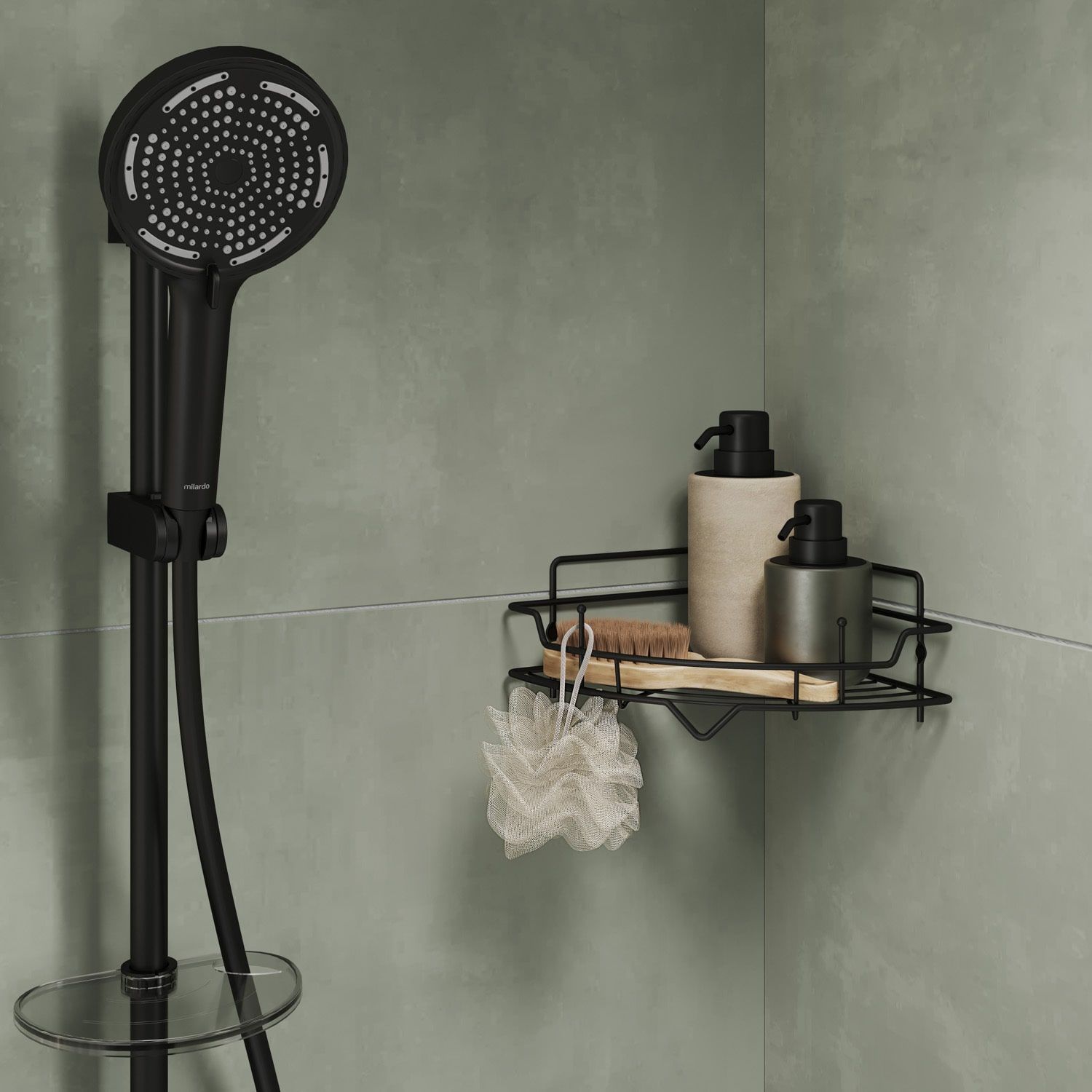Полка Milardo® в черном цвете выполнена из антикоррозийной стали со стойким матовым покрытием, благодаря чему она прослужит дольше во влажном помещении ванной комнаты.