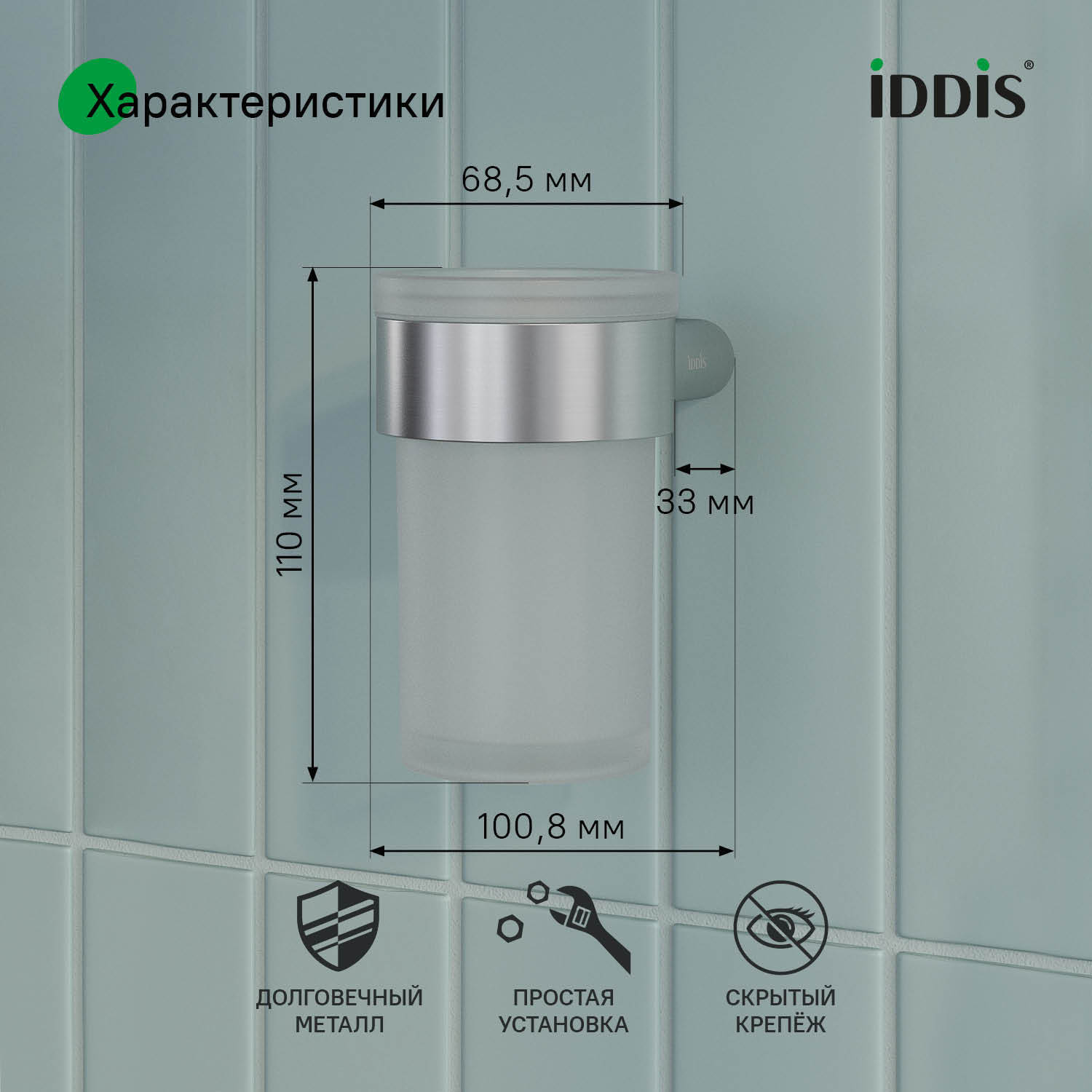 Стакан удобен в установке, монтаж не требует профессиональных навыков. Крепёжные элементы скрыты корпусом, что обеспечивает привлекательный и аккуратный внешний вид.