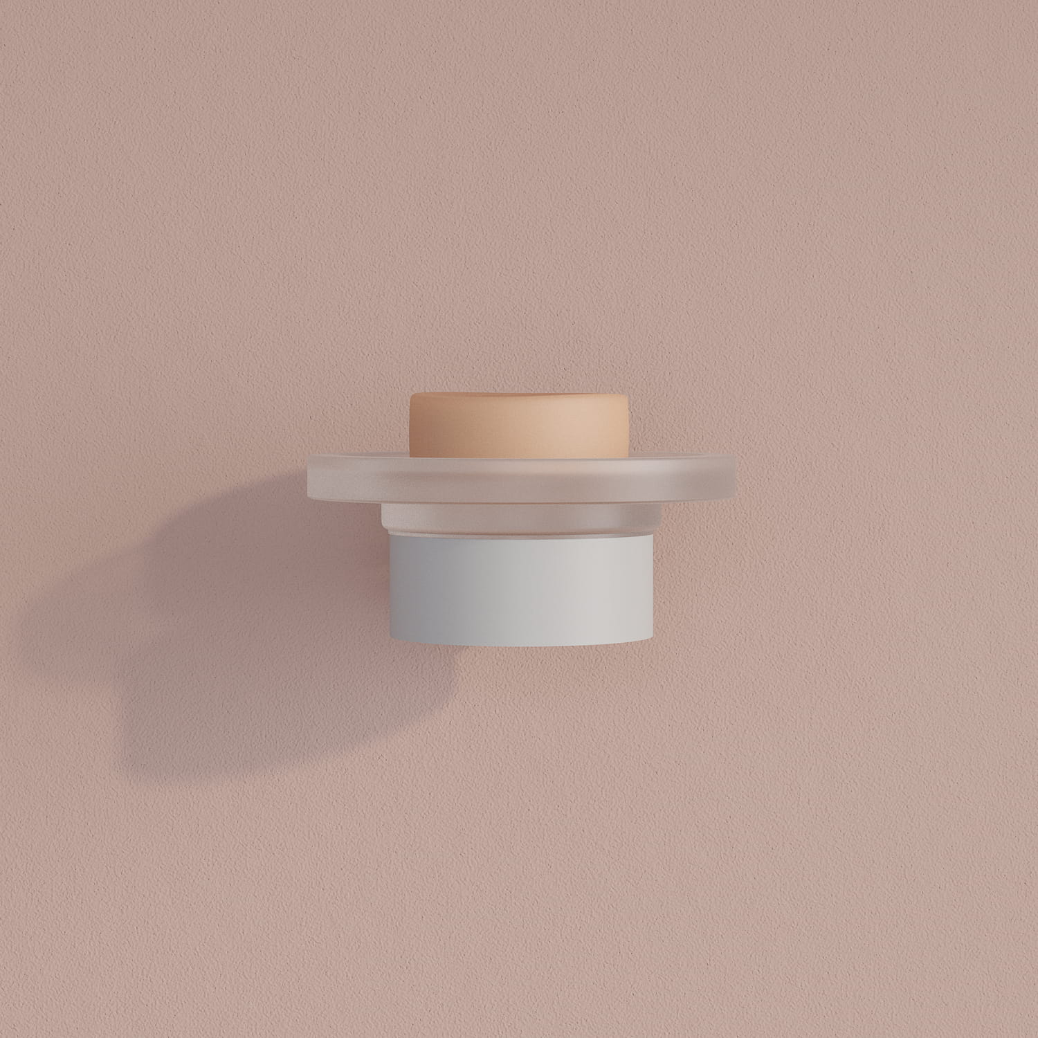 Мыльница из матового стекла легко вынимается из держателя, и её просто промыть.