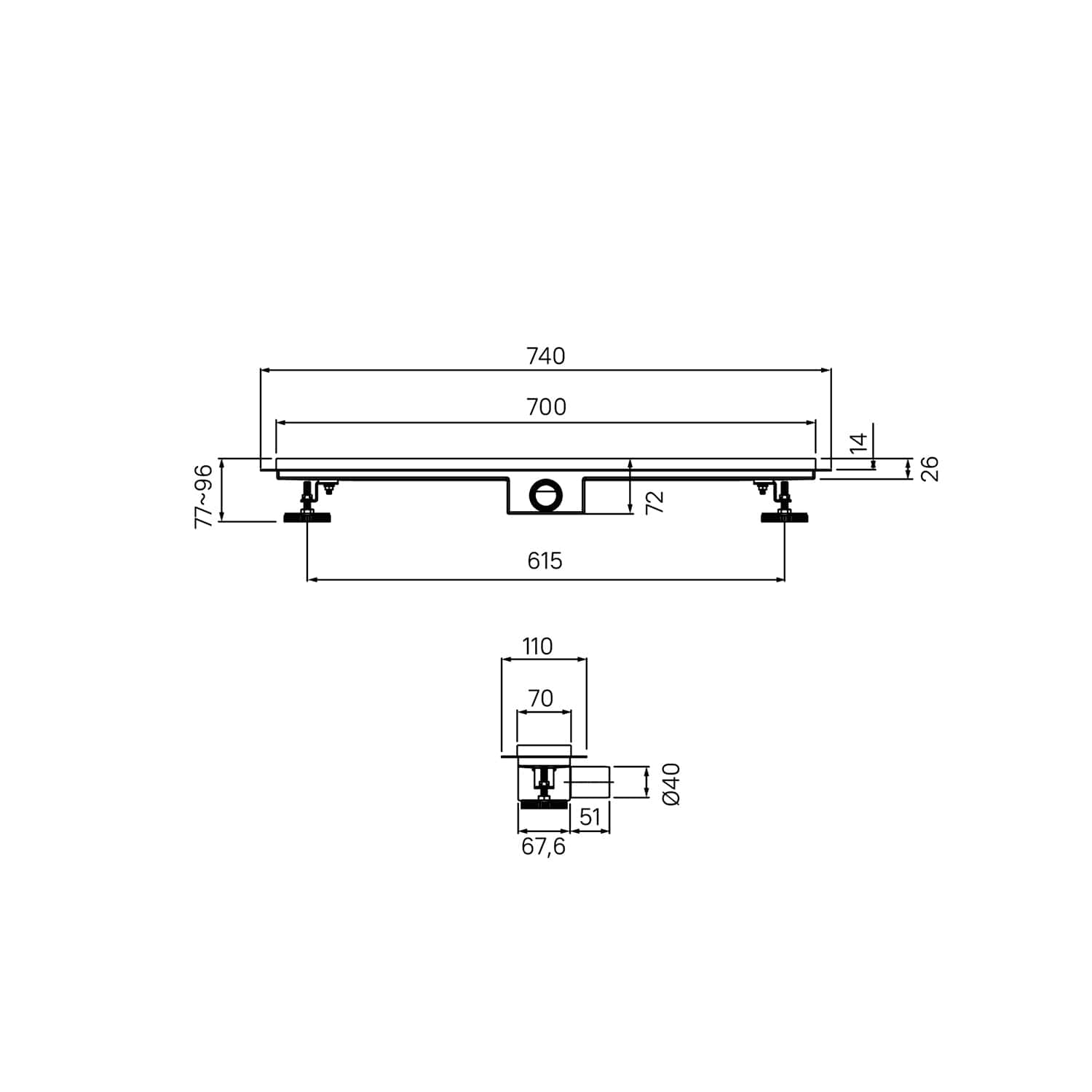 • Регулируемые опоры позволяют адаптировать лоток по высоте.