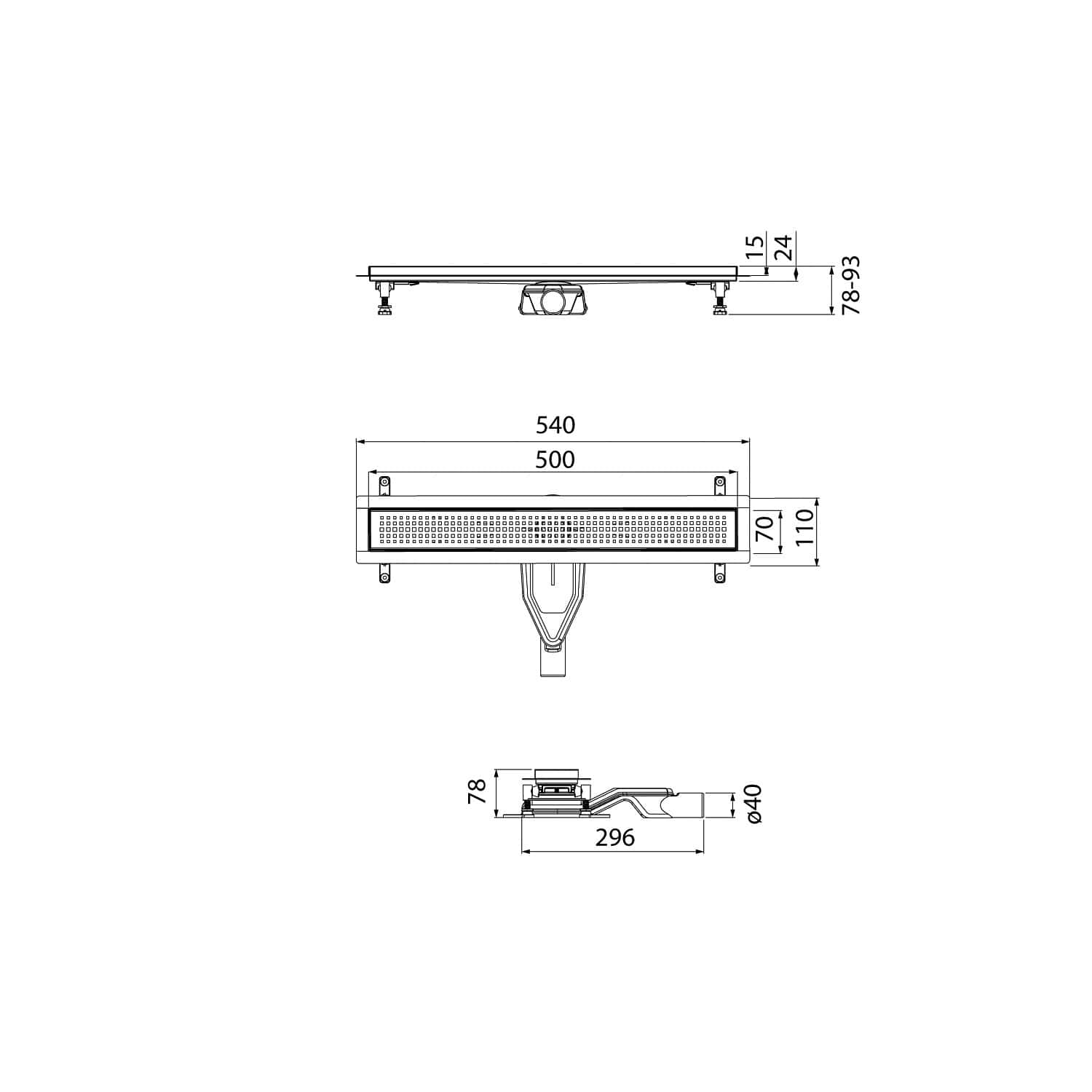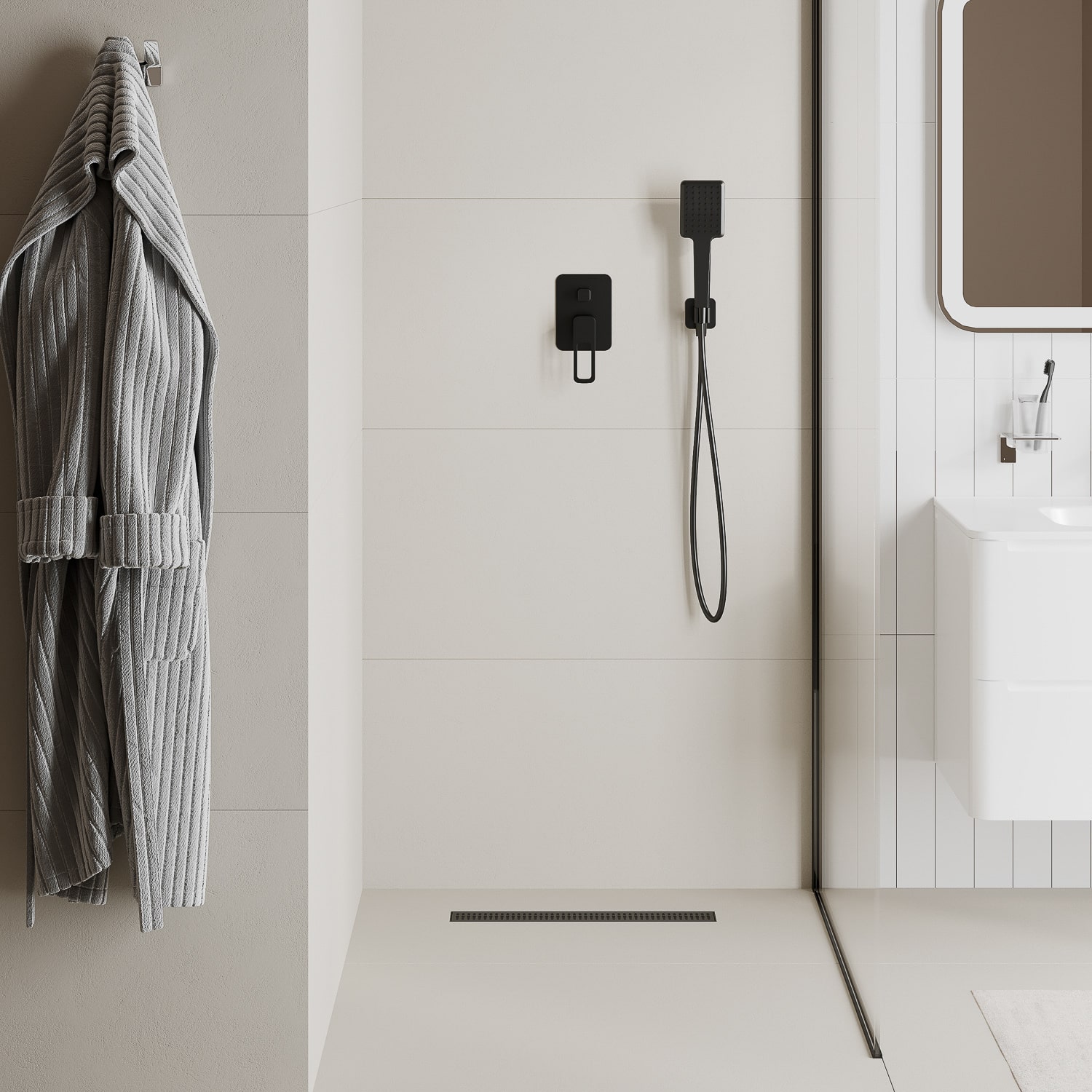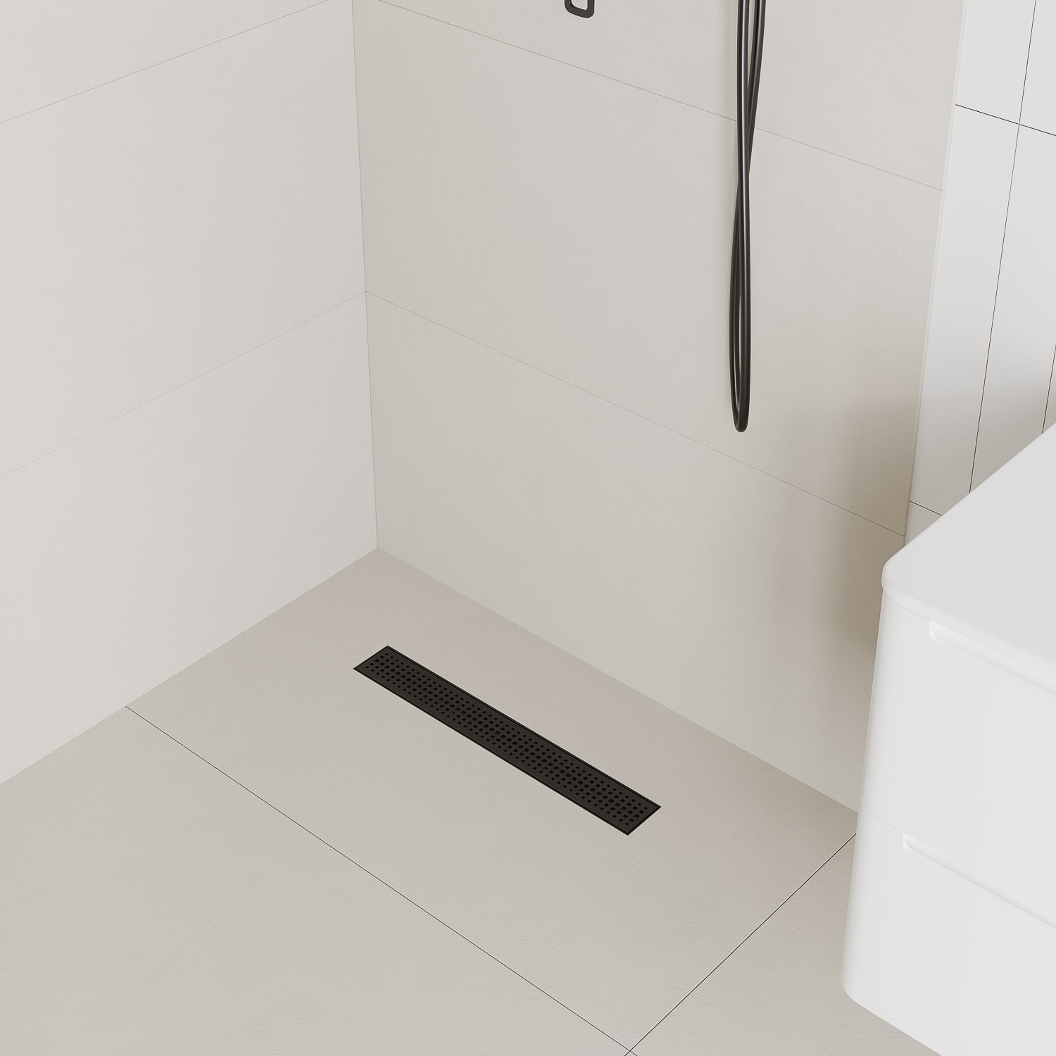 Лоток душевой, сифон 360, комбинированный затвор, перфорированная решетка, 500мм, черный, IDDIS, 975B5BL20DZ