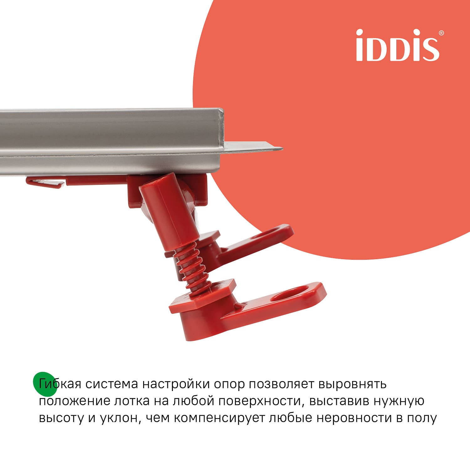 • Регулируемые опоры позволяют адаптировать лоток по высоте даже при различном уровне пола по бокам лотка.