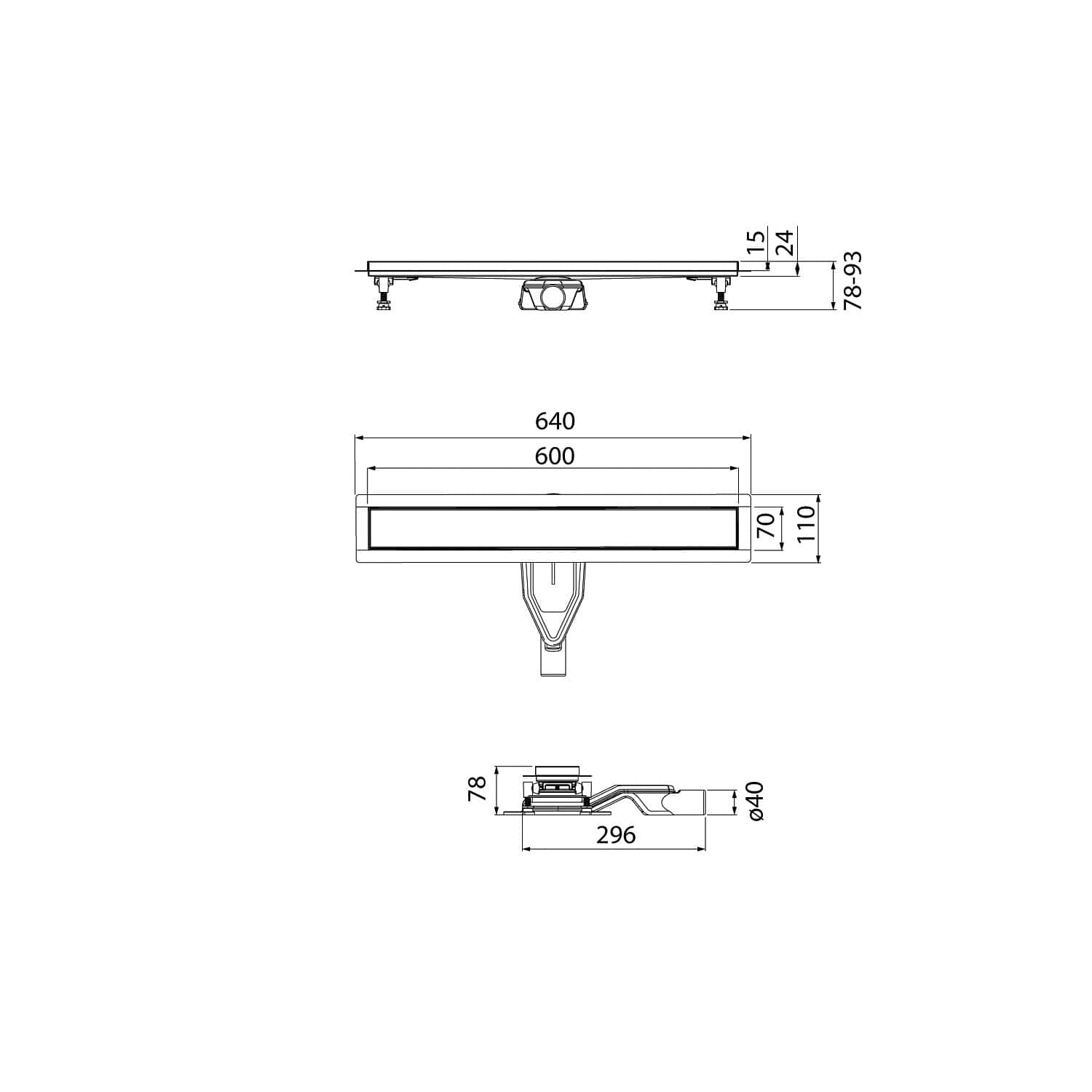 Тип решетки: двухсторонняя (под плитку). Размеры решетки: 600 мм. Вид затвора: комбинированный (мокрый + сухой). Диаметр выпуска в канализацию: 40/50 мм. Пропускная способность: 42 л/мин. Направление выпуска: горизонтальный, вращение 360°. |