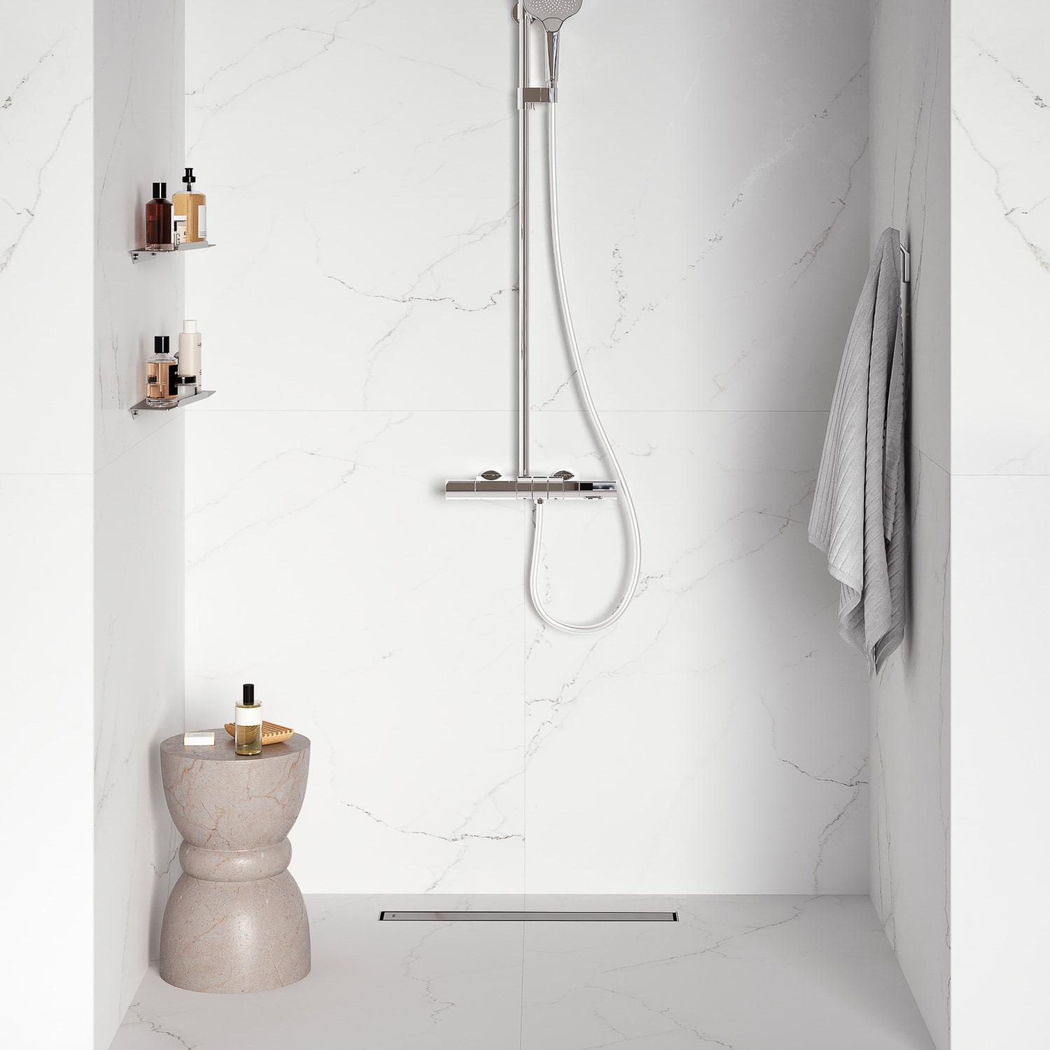 Лоток душевой, сифон 360, комбинированный затвор, двухсторонняя решетка, 600мм, хром, IDDIS, 975B6SB00DZ