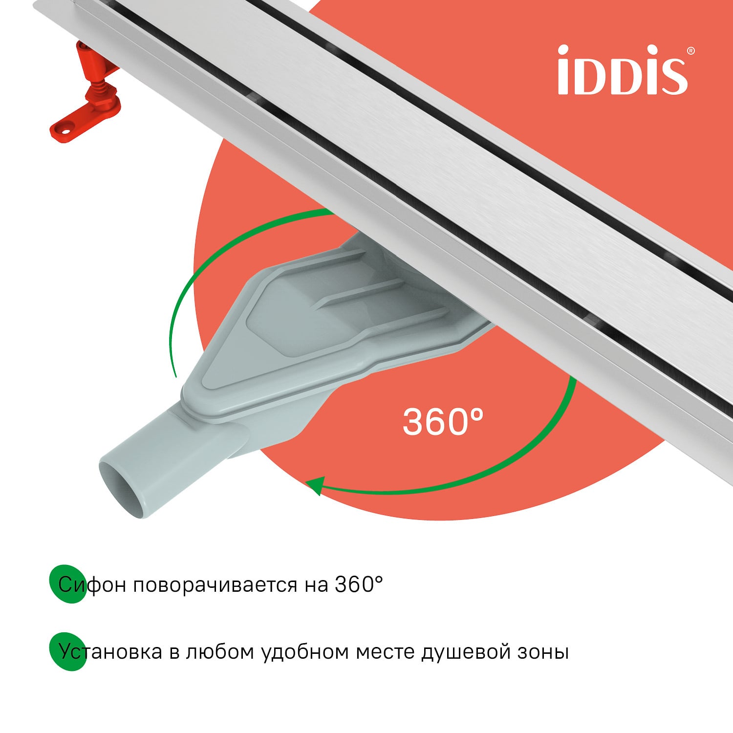 Лоток душевой, сифон 360, комбинированный затвор, двухсторонняя решетка, 700мм, хром, IDDIS, 975B7SB00DZ