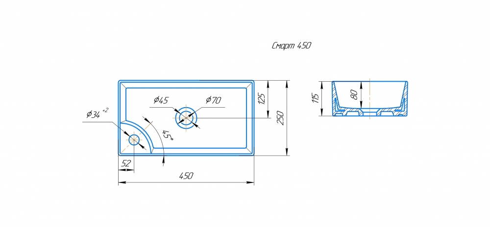 Умывальник на столешницу "Смарт" 450, Valleri, SMRT45