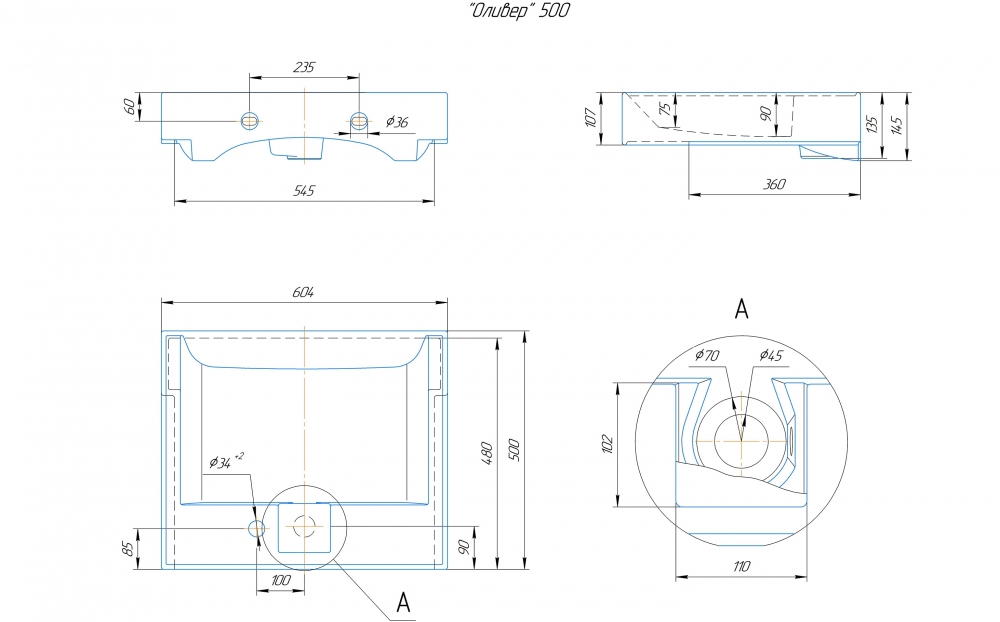 Умывальник "Оливер 500", ТМ Valleri, арт OLV500