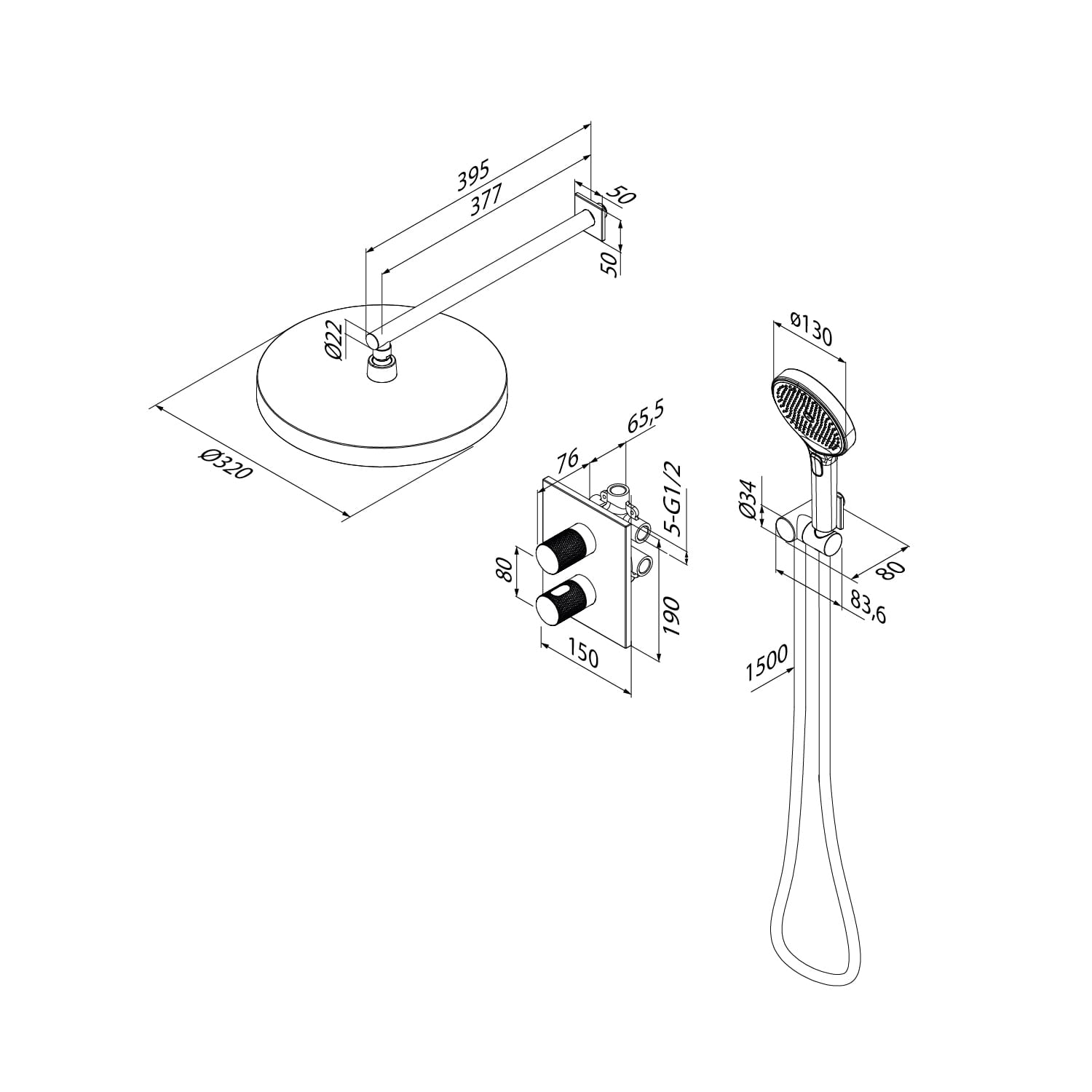 Продуманная функциональность: внушительная верхняя лейка Ø32 см обеспечит всеобъемлющий поток, ручная лейка с 3 режимами. Гибкий и надёжный силиконовый шланг 1,5 м.