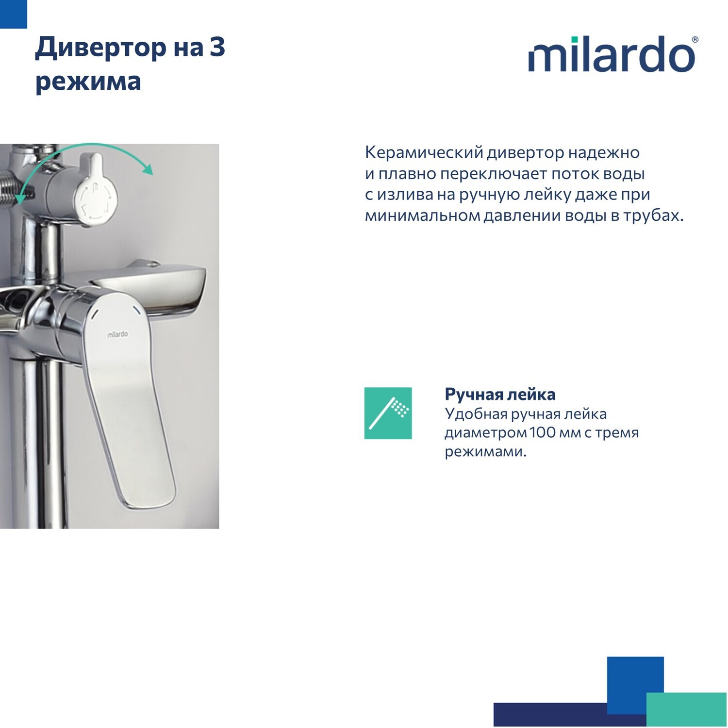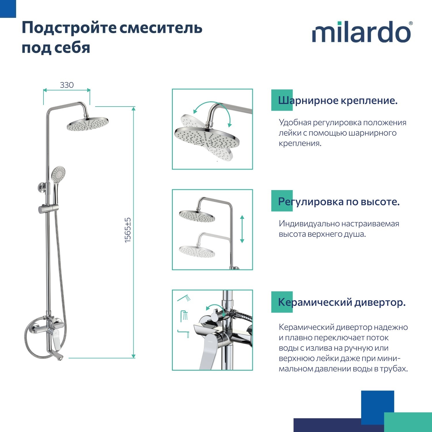 • Гарантия на смеситель Milardo® – 7 лет, на картридж – 3 года, на душевые аксессуары – 1 год.