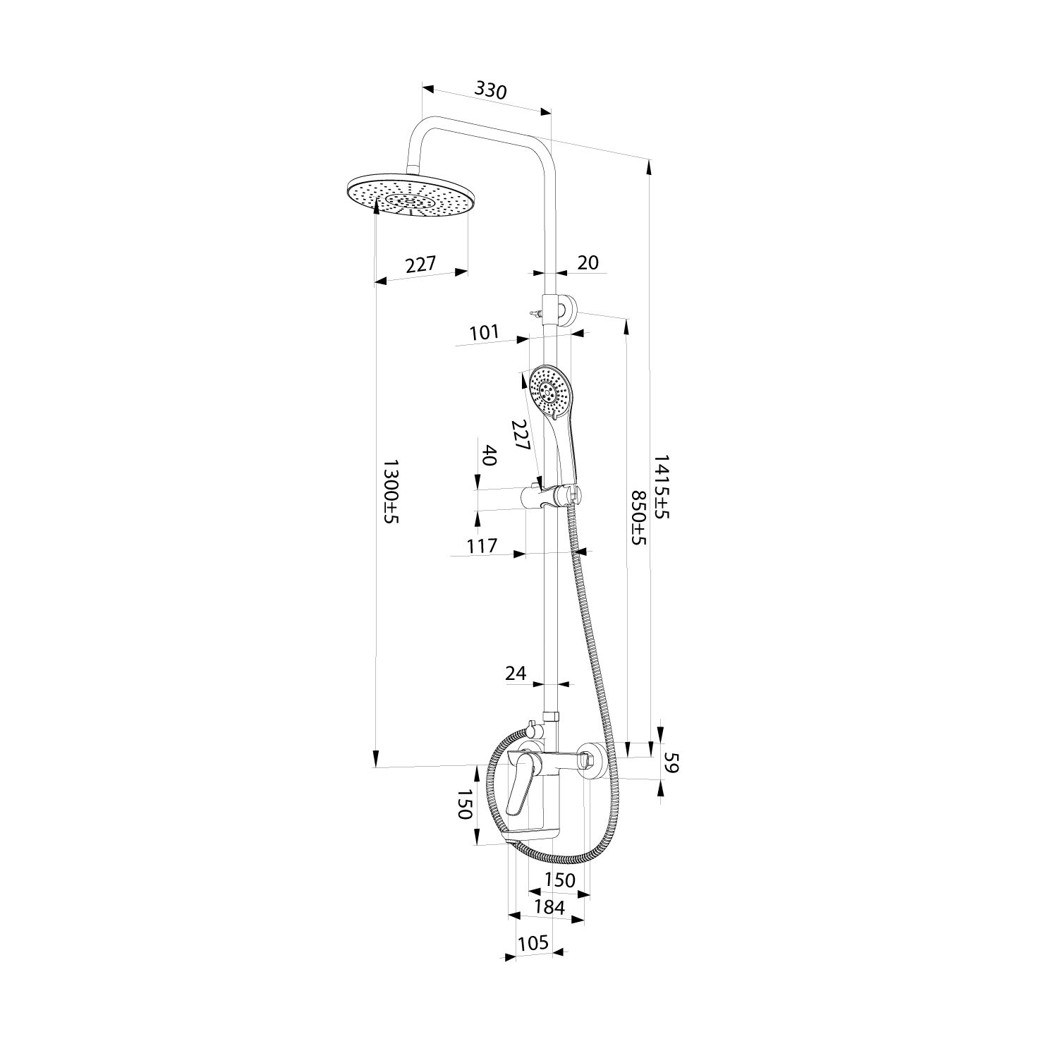 • В комплекте: тропический душ увеличенного диаметра (Ø245 мм), большая ручная лейка (ø 114 мм) с держателем, душевой шланг в оплетке из нержавеющей стали (1,5 м), эксцентрики с отражателями и крепеж.