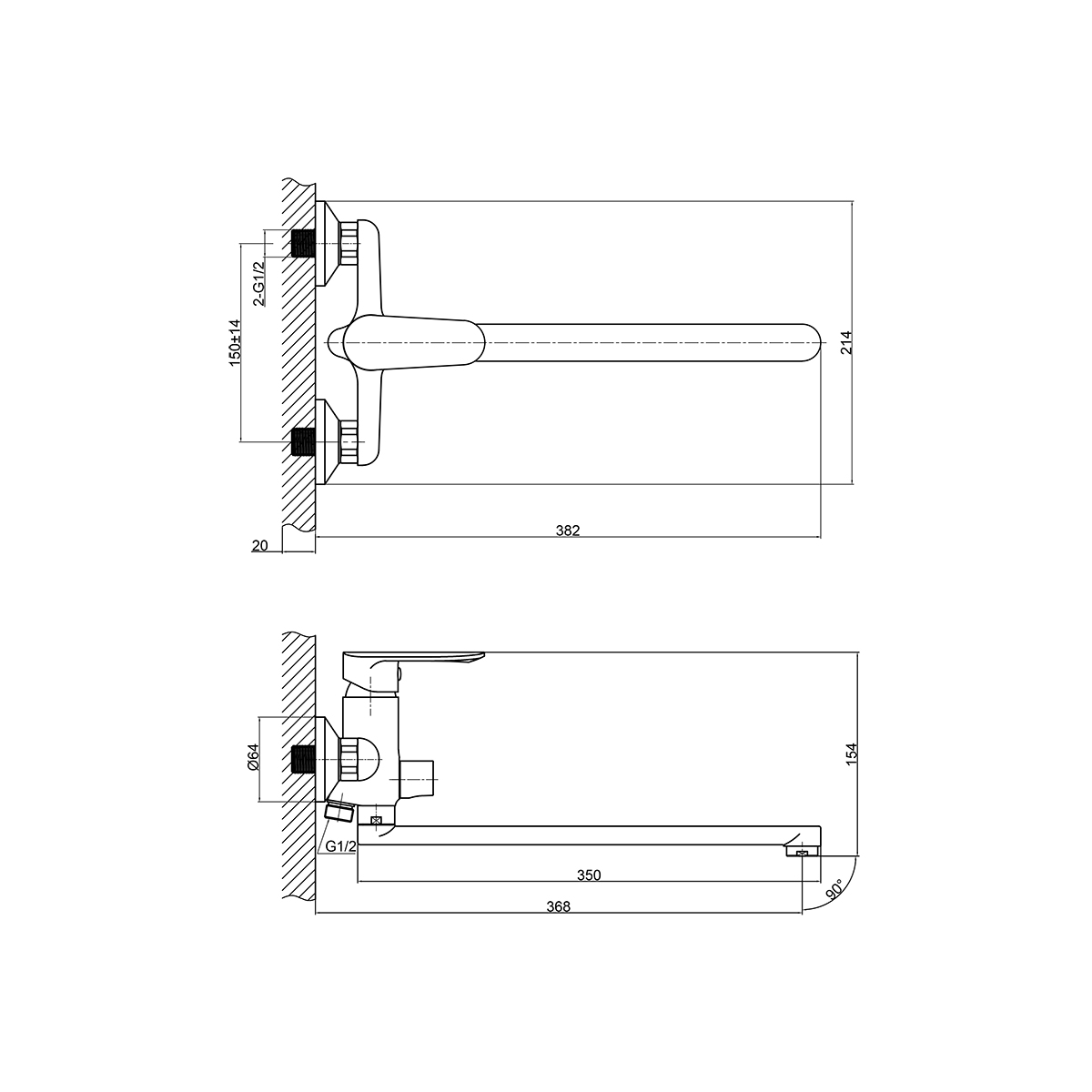 Присоединительная группа (эксцентрики ½” с отражателями) для настенного крепления.