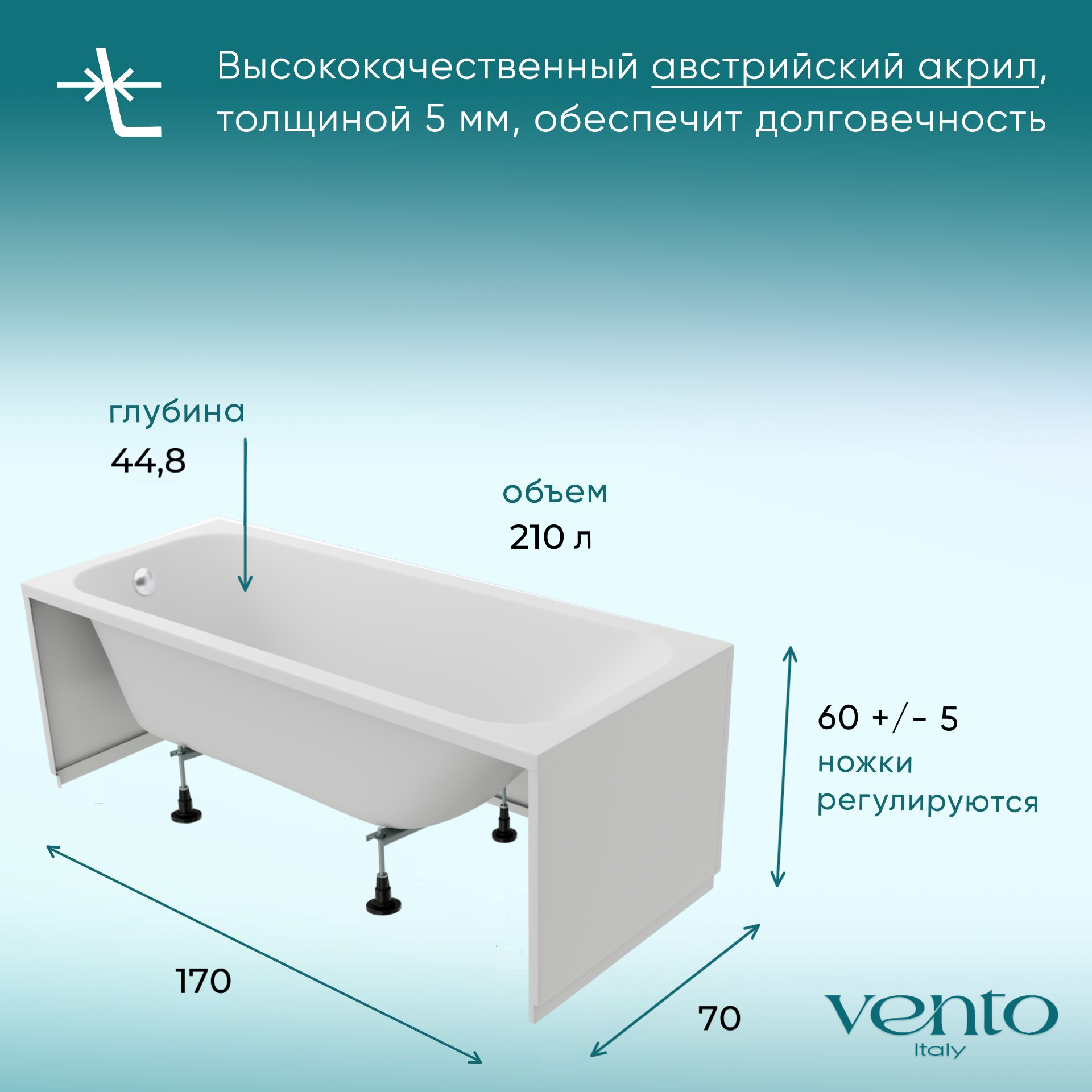 Ножки универсальные L550 для ванн VentoSpa, Экран лицевой VentoSpa 150 |